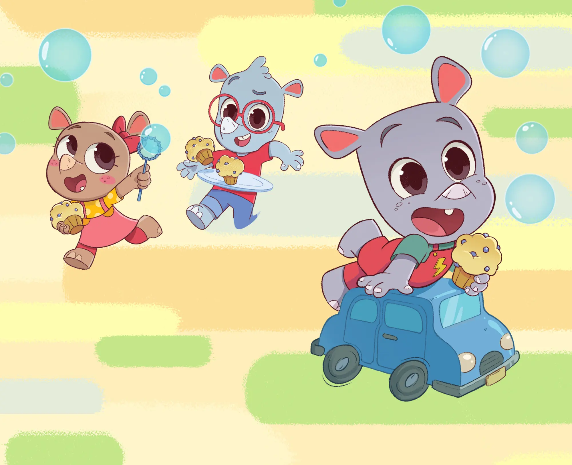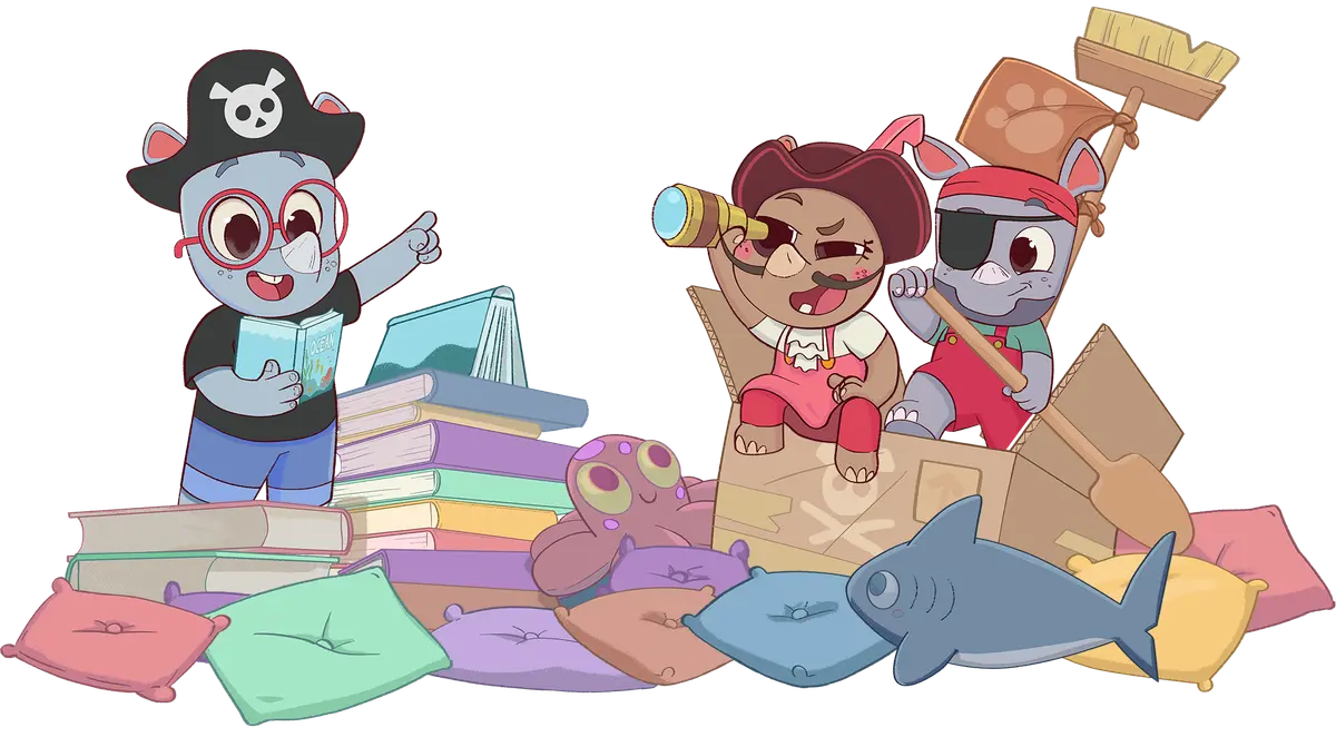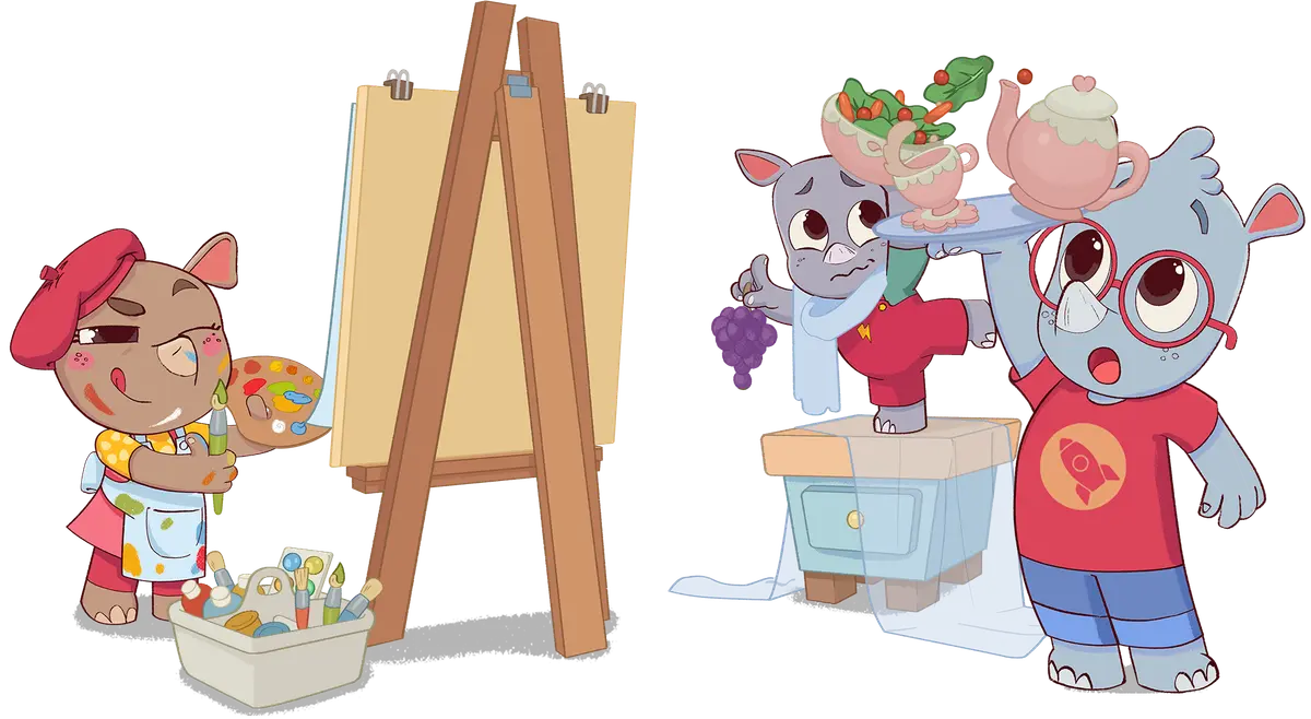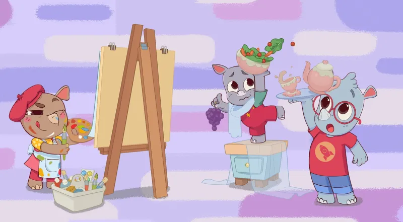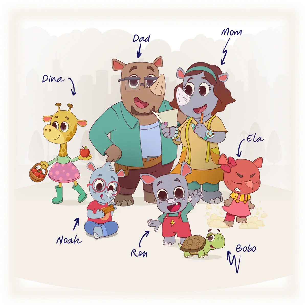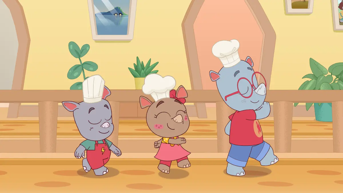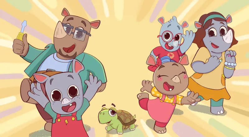 Family House is a very busy, happy place, where lives siblings Noah, Ela, Ron and their parents, Rhino Mom and Rhino Dad. The Rhinos loves to play games together.