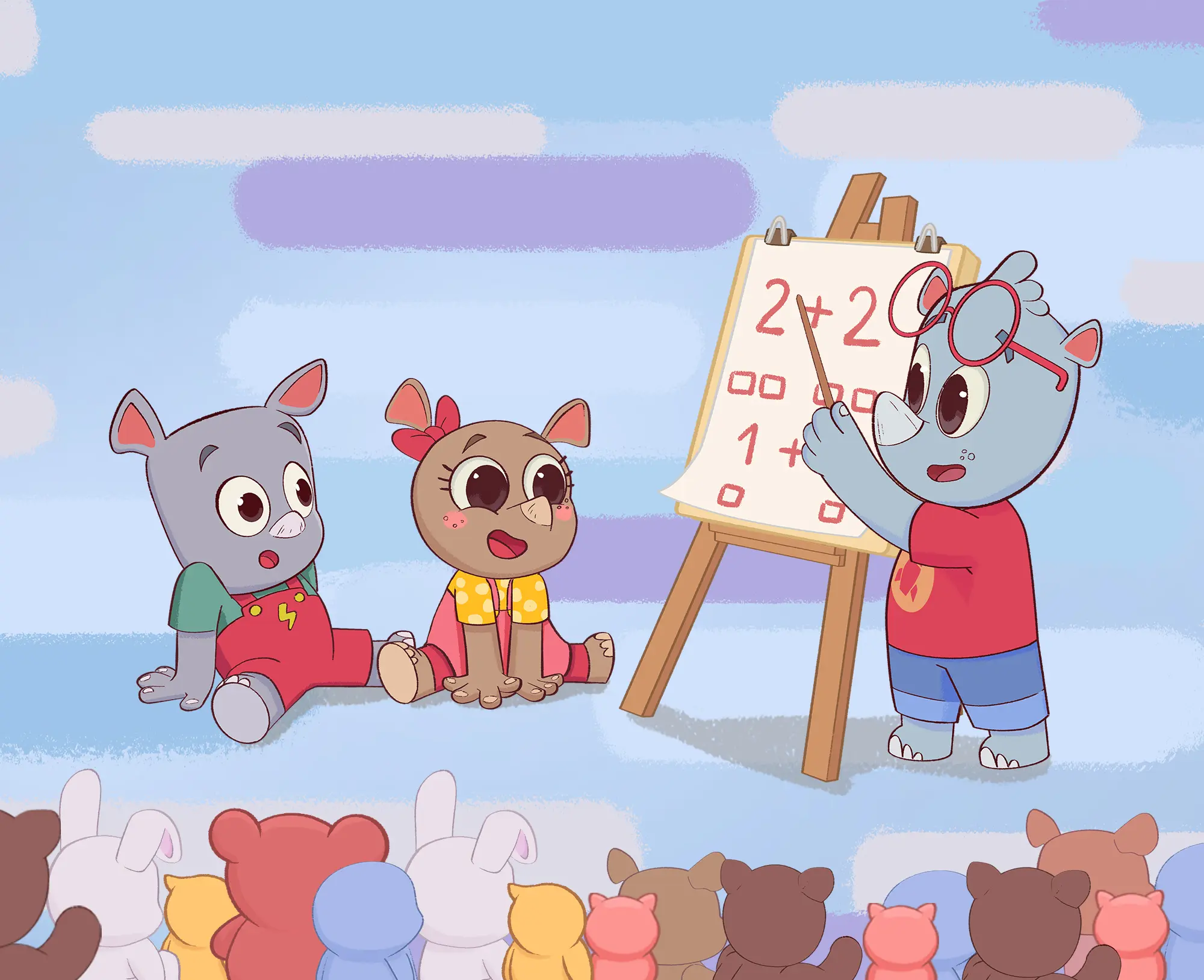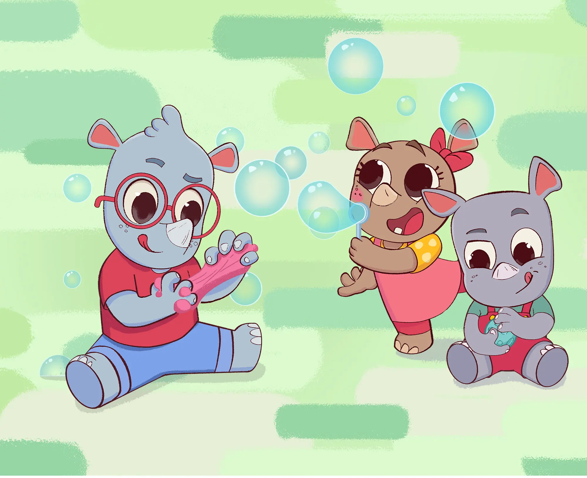 Ron is the most relaxed and easy going of the Rhino siblings. Although Ron enjoys his toy cars (he has an entire collection under his bed), he isn’t overly passionate about them. He just enjoys being in the moment and can often be found lying in the grass, looking at clouds. Ron is a very physical kid. He loves sports. He’s fast, and constantly competing with Ela in running, jumping and playing ball. When Ron comes up with a project to do, he feels very proud of himself. But, when the project doesn’t turn out to be as easy to do as he expected, he can get very frustrated and angry.